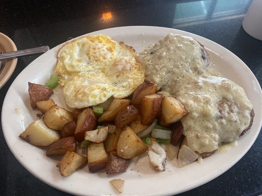 I've been here a few times for breakfast and the food is scrumptious I had the omelet with potatoes and my son and daughter had biscuits and gravy along with eggs and bacon. This place doesn't disappoint We also had mimosas with our food.
