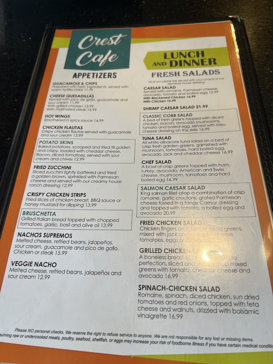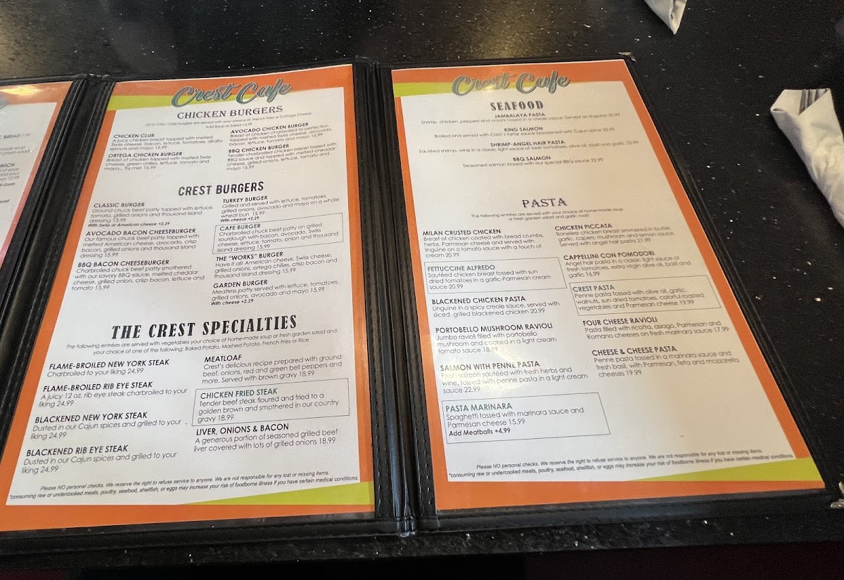 Crest Cafe Menu